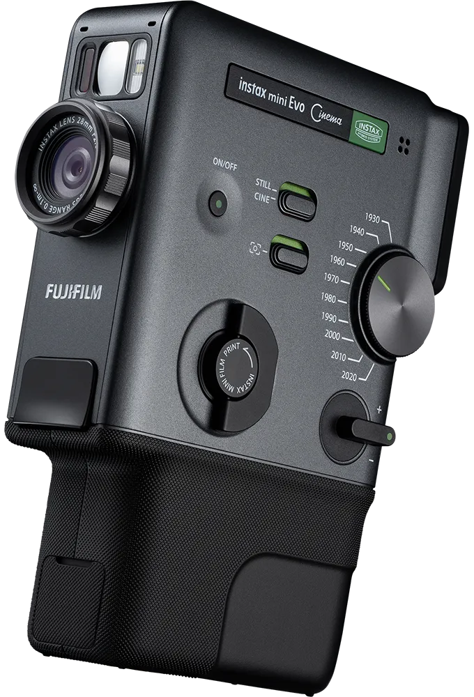 The instax mini Evo Cinema™ hybrid instant camera (mini Evo Cinema) delivers a smooth, razor-sharp outlook that turns casual moments into unforgettable ones. And the real magic? The power of three. An instant camera, smartphone printer and video camera all in one. Your story, in glorious motion.